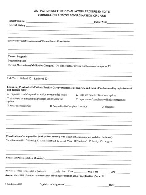 Psychiatric Outpatient Progress Note Template